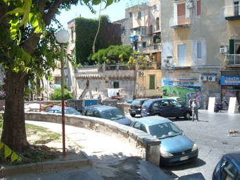 Piazza di S.Maria dei Miracoli: Piedone e il Commissario incontrano il clan di Manomozza