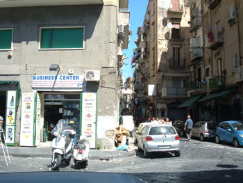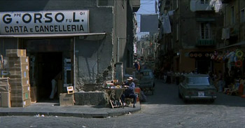 La volante, poi, attraversa Piazza del Carmine e imbocca una stradina trafficata da venditori ambulanti. Oggi sull’angolo non si trova più il negozio di carta e cancelleria di allora, bensì uno di assistenza elettronica. Questa piccola via si chiama via Lavinaio.