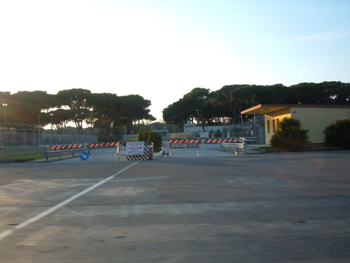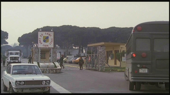 Da notare come, presso l'entrata principale della base, la troupe collocò un cartello con sopra scritto il nome di fantasia "Camp Lion". A parte questa scritta, oggi è tutto pressoché uguale, come si può notare dall'inquadratura che segue.